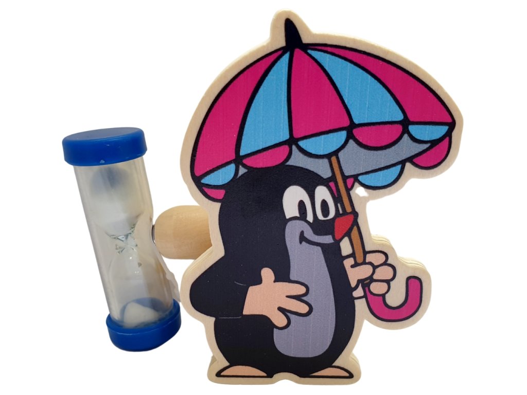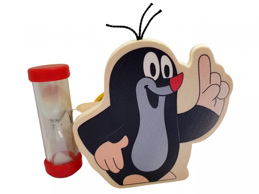 Přesýpací hodiny odměřují správné 2 minutové čištění a děti si budou zoubky čistit mnohem raději, když jim kartáček bude hlídat krteček. Vyvarujte se přímému styku s vodou.