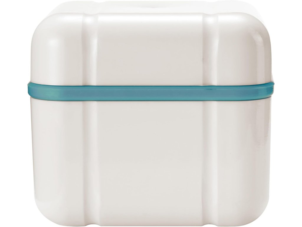 Curadent nádobka pro lázeň na umělý chrup se sítkem a krytem pro uskladnění a čištění zubních náhrad.