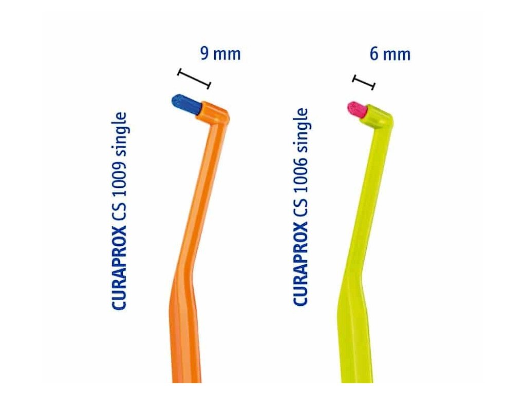 Technika čištění kartáčky Curaprox Solo je pro největší perfekcionalisty. Jediný svazek štětin z extrémně jemných vláken umožňuje účinné a snadné leštění povrchů jednotlivých zubů. Je důležité natrénovat správnou techniku čištění zub po zubu a také okrajů dásní. Takovéto čištění jednotlivých zubů je nejúčinější postup k dosažení dokonalé ústní hygieny. Jak si čistit zuby: Curaprox CS 1009 se svazkem čistících vláken dlouhých 9mm je vhodný zejména pro čištění prostorů mezi rovnátky. Solo kartáčky se také doporučují používat na čištění zubních implantátů, zadních ploch stoliček nebo jednotlivých zubů, které narostly odkloněné od ostatních a jsou těžko dostupné s běžným kartáčkem. foto Druhy kartáčků Curaprox Solo: Curaprox Solo se prodává ve 2 variantách - soft- Curaprox CS 1006 a medium - Curaprox CS 1009.