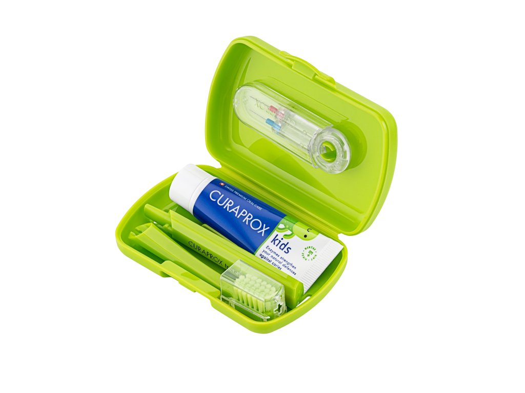 - Obsah: zubní pasta KIDS 10 ml - máta, 2x mezizubní kartáček (CPS 06+07), duo držák mezizubních kartáčků, skládací zubní kartáček CS KIDS Ultrasoft, praktické uzavíratelné pouzdro, samolepka