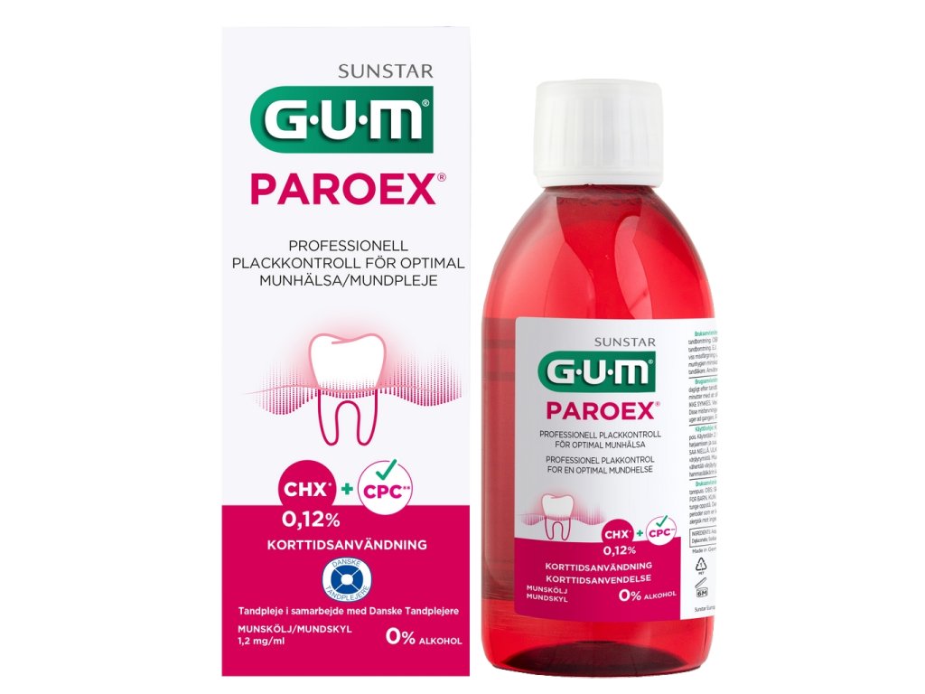 Paroex 0,12% lze také používat jako doplněk ústní hygieny během těhotenství, kdy dochází k větší tvorbě zubního plaku.