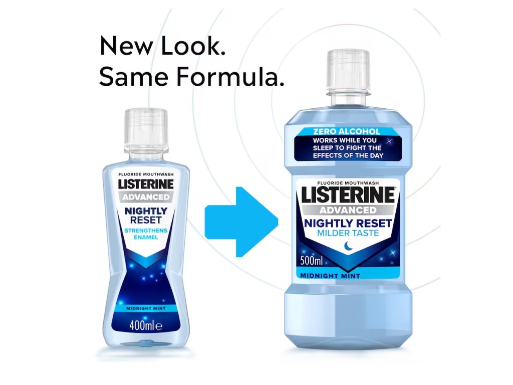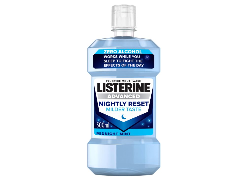 Ústní voda LISTERINE® Nightly reset s inovativním složením pomáhá chránit vaše zuby hlavně v noci, po celodenním působení kyselin. Ty vznikají v ústech po konzumaci jídla a pití. Omezuje tvorbu zubního plaku a bojuje proti hromadění bakterií v ústech.