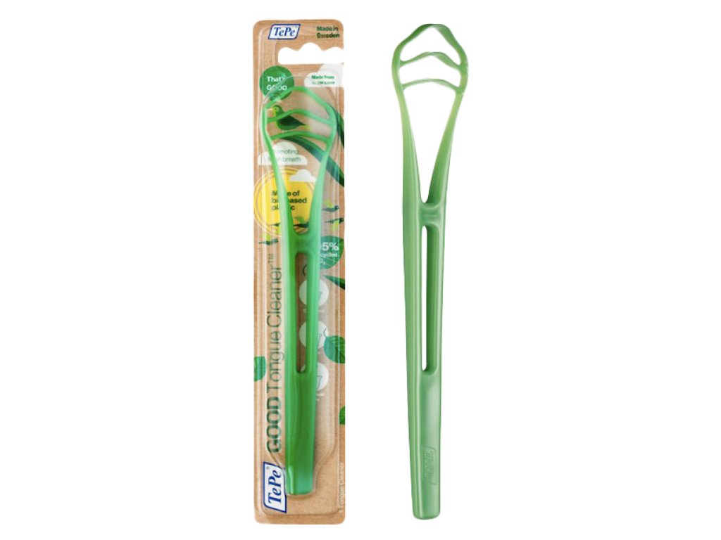 Většina případů halitózy (zápachu z úst) má původ v přítomnosti bakterií plaku na jazyku. TePe jazyková škrabka, pomáhá odstranit bakterie, které se na jazyku usazují a tím snížit příčinu špatného dechu a zlepšit tak celkové orální zdraví. Škrabka TePe nabízí "Triple–effect" pro efektivnější čištění celkového povrchu jazyka.